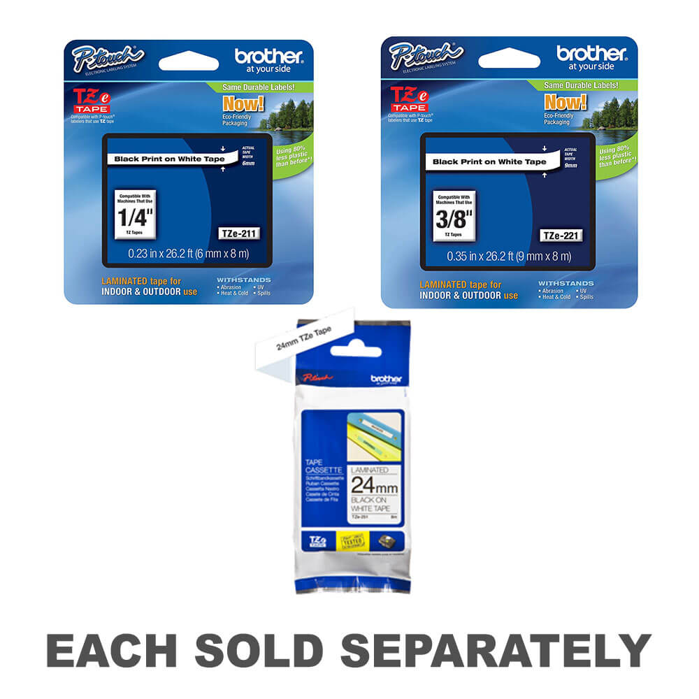 Brother's Tze Tapes er designet til brug med p-touch-labellerne og er konstrueret med en innovativ lamineret båndteknologi, der kombinerer seks lag materialer for enestående holdbarhed og ydeevne.