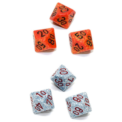 Speckled Polyhedral Lotus Tens 10 ~ Multiple loose dice are pictured to show all sides and possible color variations. Item Code is for individual dice.