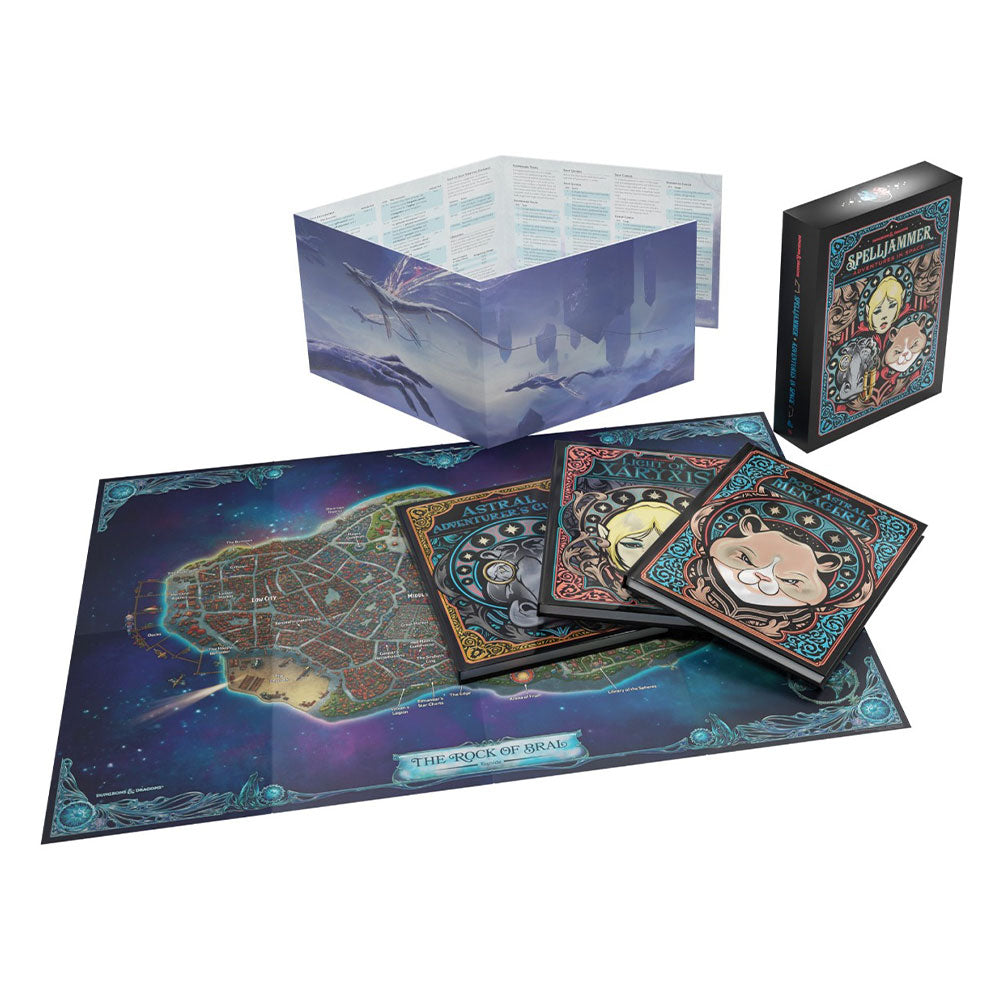• Den astrale eventyrers guide-64-siders indbundne bog, der præsenterer det astrale fly som en kampagneindstilling, inklusive rumbaserede karakterindstillinger, trylleformularer, magiske genstande, rumfartsregler, skibe og mere