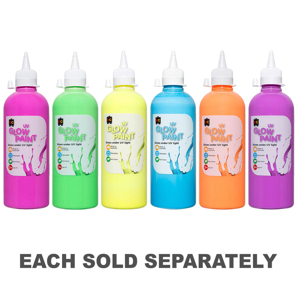 Experience the magic of the UV Glow Paint, a stellar addition to any artist's repertoire. With a generous 500ml volume, this paint is meticulously formulated to emit a striking fluorescence under ultra-violet light. Whether you're setting the stage for an unforgettable school drama scene or diving into an artistic craft project, this paint promises to make a lasting impression.