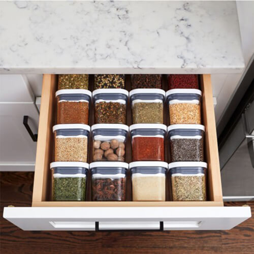 Oxo Good Grips 4-delt Mini Pop Container-sæt er lavet til at holde tørrede urter og krydderier friske, pæne og inden for rækkevidde. Trykknappen Airtight Seal og pladseffektiv designstabel er perfekt med alle popbeholdere. Nu fuldt opvaskemaskine sikkert, med praktiske fyldlinjer, tager dette must-have sæt organisering til det næste niveau. Popcontainere er ikke kun til køkkener, brug dem hvor som helst, du vil have organisering. For de bedste resultater skal du altid bruge knappen til at åbne og lukke. Bær ikke popbeholdere ved låg.
