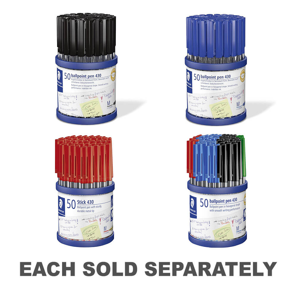 Medium: 1 mm kuglediameter med 1 mm liniebredde. Reguleret blækstrøm for at forhindre udtværing og ridning. Leveres med badekarstøtte. 50 kuglepenne 430 i sort.