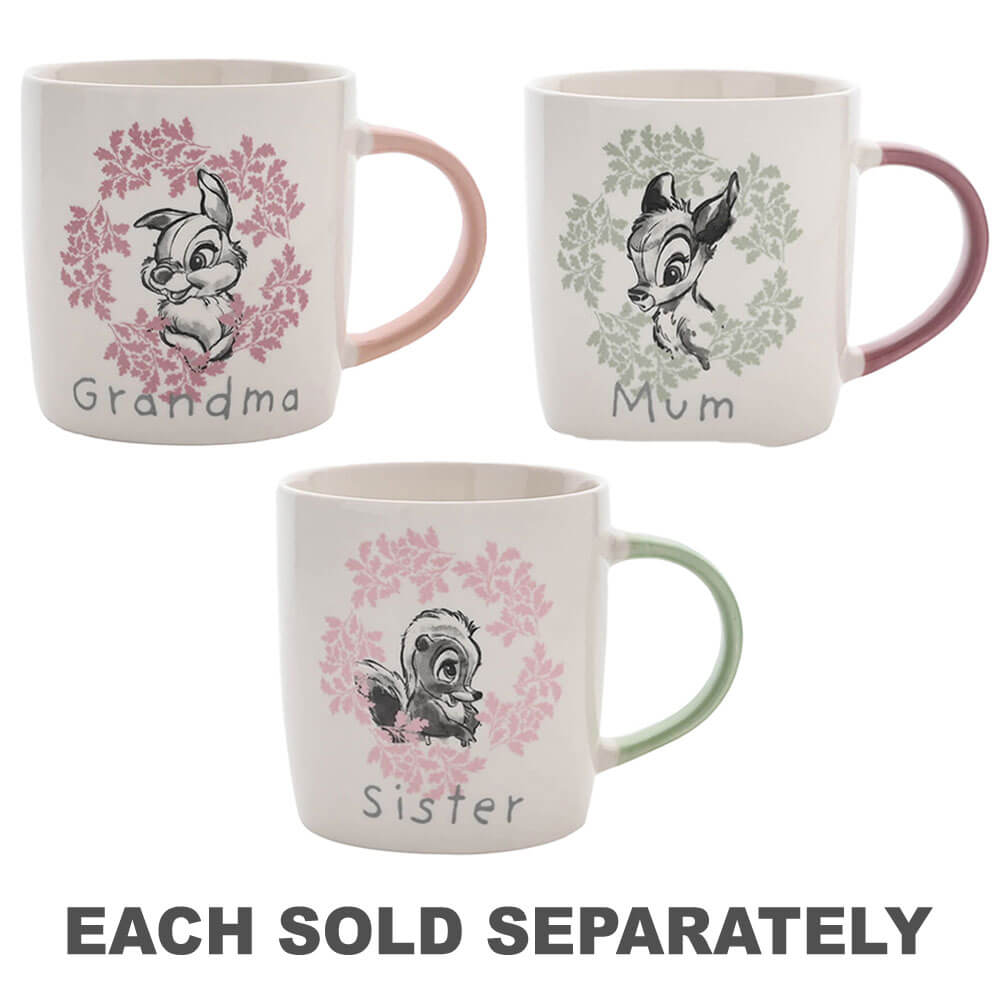 Diese süße und liebevoll gestaltete Tasse lässt Großmütter, die Disney lieben, wissen, wie besonders sie sind. Der neue Becher aus Knochenporzellan hat eine weiße Oberfläche und ist mit einem bezaubernden, auf beiden Seiten wiederholten Bild von Thumper von Bambi verziert, umgeben von rosa Blättern. Es ist mit „Oma“ in silberner Schrift und einem großen, pastellrosa Griff versehen.