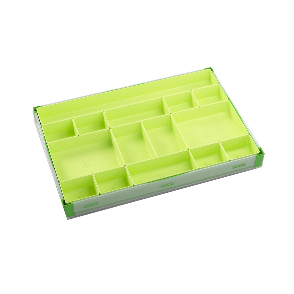 15 removable trays in 5 different sizes