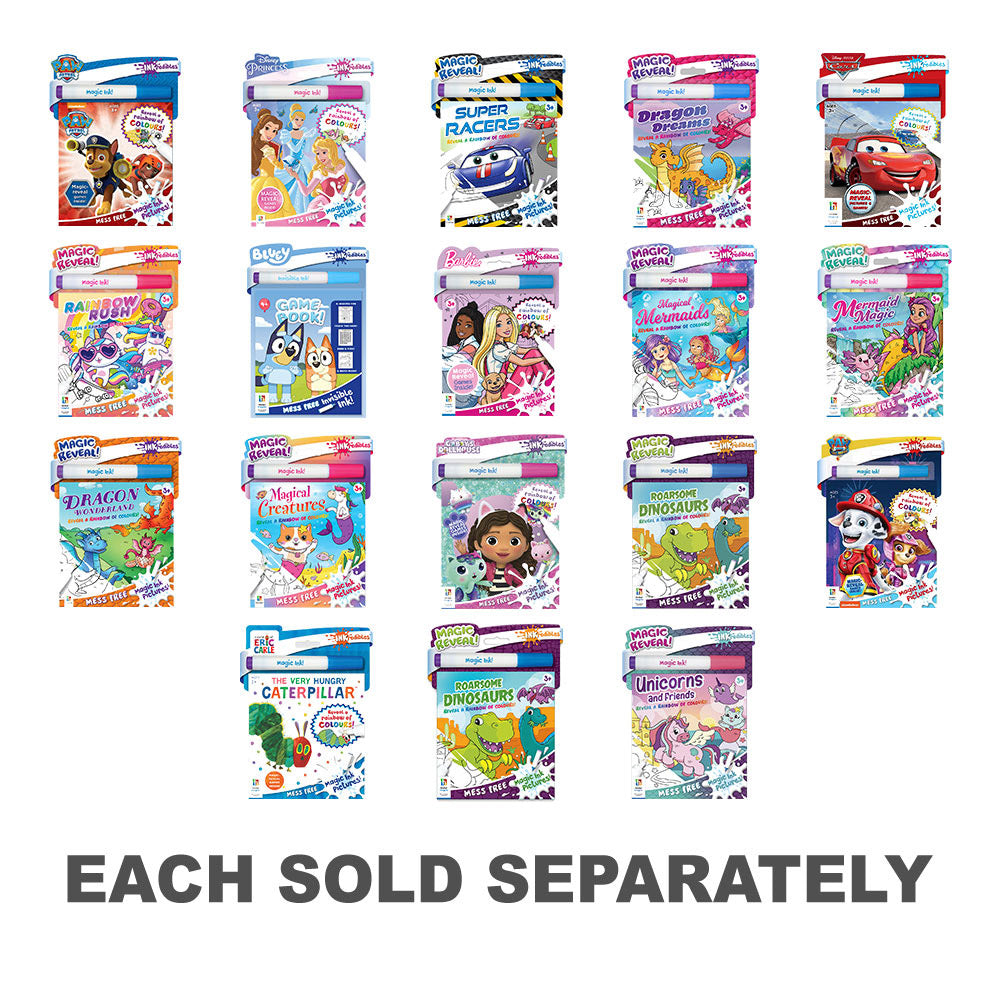 Kids can enjoy a range of exciting activities, including character reveals, seek-and-finds, mazes and more, all of which come to life when the Magic Ink pen runs across the page, revealing rainbows of colour.