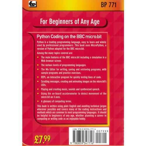 Python ist eine führende Programmiersprache, die leicht zu lernen und von professionellen Programmierern weit verbreitet ist. Dieses Buch verwendet Micropython, eine Version von Python, die für das BBC Micro: Bit adaptiert ist. Dieses Buch ist in einfachem Englisch geschrieben und vermeidet technischer Jargon, wo immer dies möglich ist, um Codierungsanweisungen zu decken, die den meisten Programmiersprachen gemeinsam sind. Geeignet für jedes Alter oder jede Erfahrung.