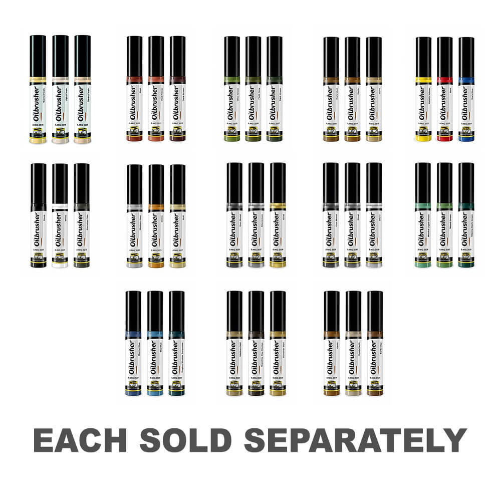 This unique range of Oilbrusher painting and weathering sets offers the convenience and accuracy that you expect from AMMO by Mig Jimenez. Each set contains the correct 3 tones for each task, making the choice of colors simple.