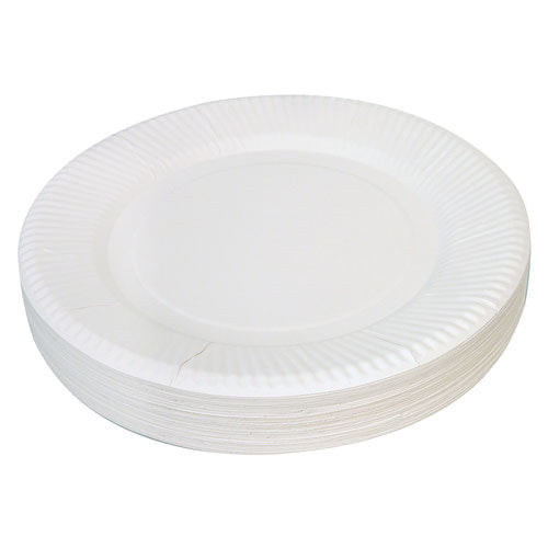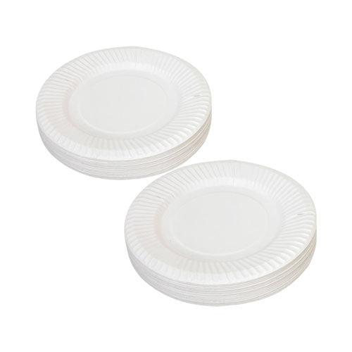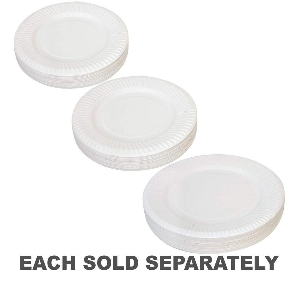 - Pack of 50 white uncoated paper plates