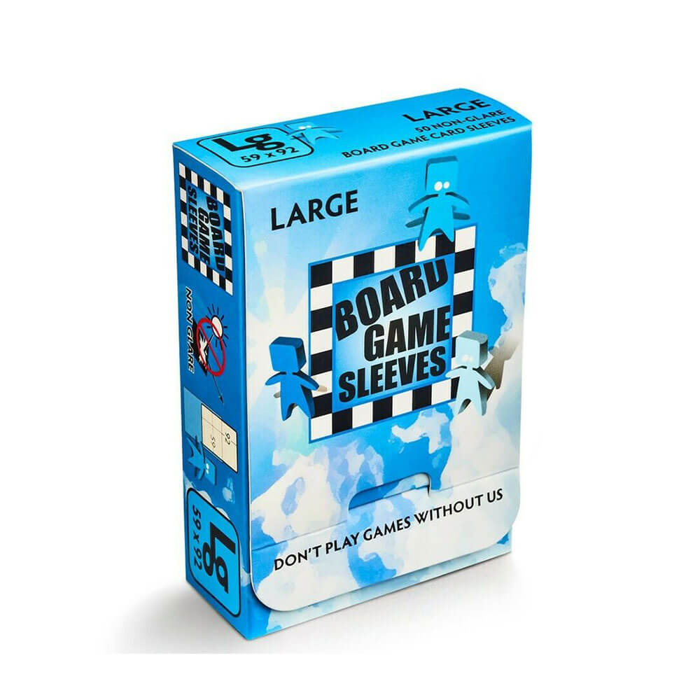 50 non-glare board game card sleeves For cards measuring up to 65 x 100mm (29/16 x 315/16"). This card size is mainly used in 7 Wonders, but also found in games like The Pursuit of Happiness, Coup and Cargo Noir.
