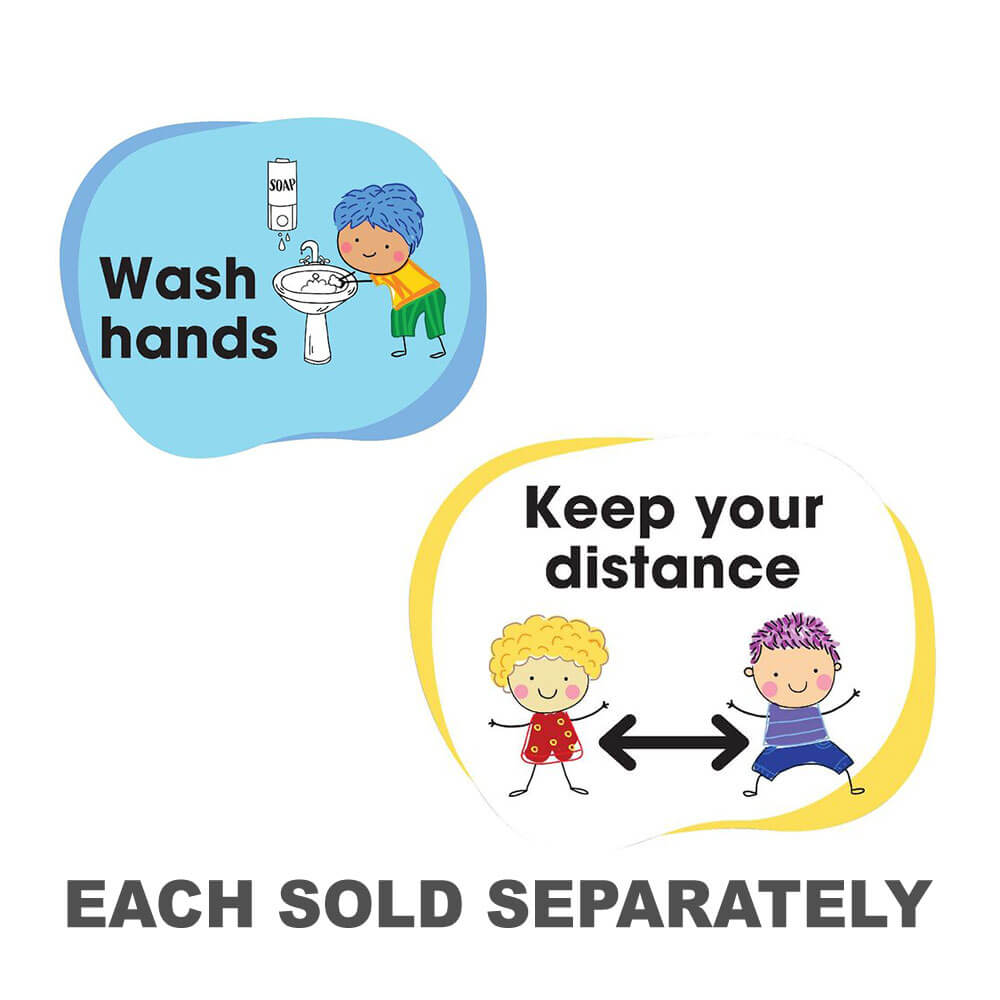 The Durus Hand Washing Floor Sign is ideal for the outside area at school or at work to remind students and patrons of hygiene measures. The sign is self-adhesive for staying on the concrete or pavement and is non-slip for safety. The messaging on the sign reminds people to wash their hands.