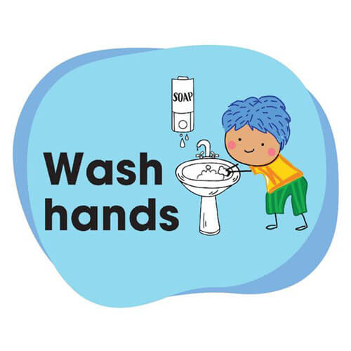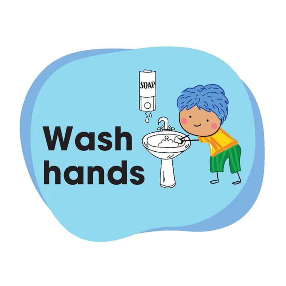 - The floor sign is designed to remind students and patrons to wash their hands.