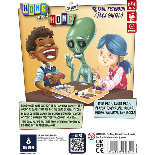 In the co-operative board game Home Sweet Home (or Not), 2-5 players must collaborate to complete the objectives laid out in one of the five missions included in the game. Each mission requires a different layout of the house, which is constructed of different rooms connected by 3D wooden doors.