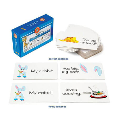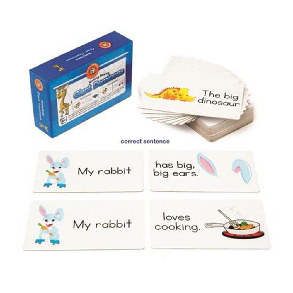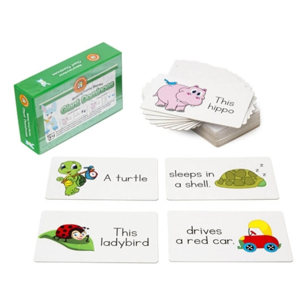 These Learning Can Be Fun Making Stories is Fun Dominoes are perfect for helping new learners develop their language skills. The dominoes contain a variety of words and phrases which can be combined to create funny sentences which can then be read out loud, written down or printed out.