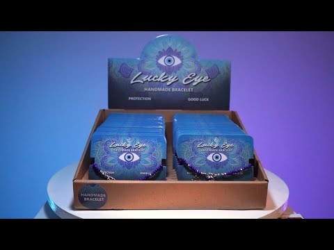 Blue beaded bracelet featuring a tassel and hamsa charm.