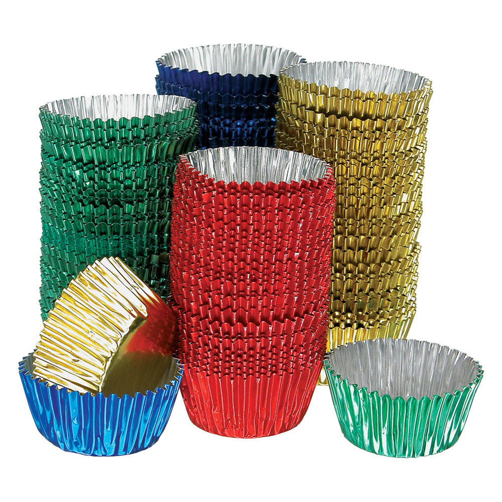 - Pack of 100 assorted metallic mini paper patty pans