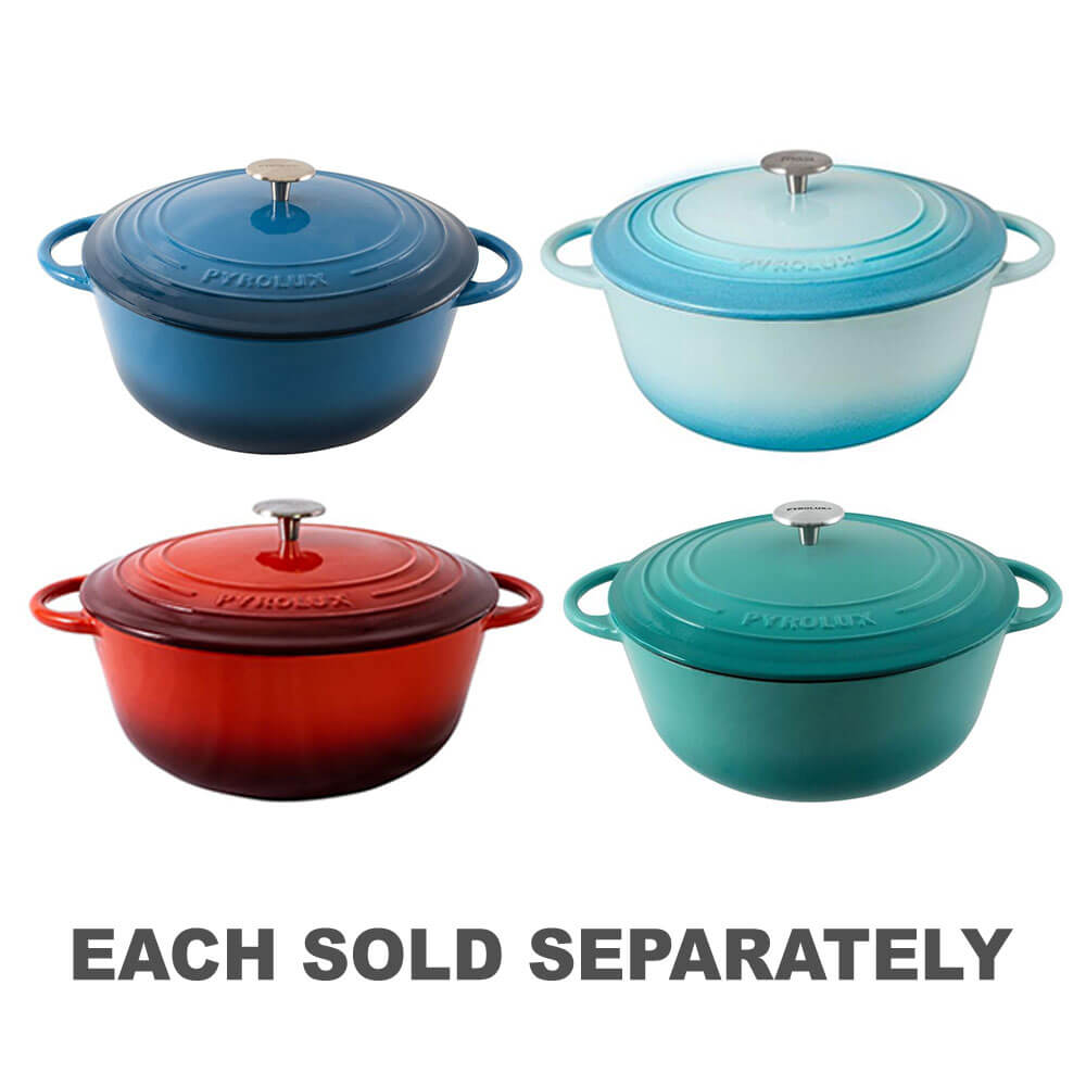 The PYROCHEF Round French Oven is perfect for casseroles, stews, soups, roasts, searing, sautéing and baking, your one-stop pot for delicious meals. Handles easily from any cooktop to oven to table for nutritious creations. Cook at low to medium heat to create perfect dishes. The cast iron construction of your pot retains heat for even cooking with no hotspots. This show-stealing Round French Oven will keep your flavoursome dishes warmer at the table for longer. With its ultra smooth 3 layer enamel coating, this piece of cookware is durable and makes light work of cleaning.