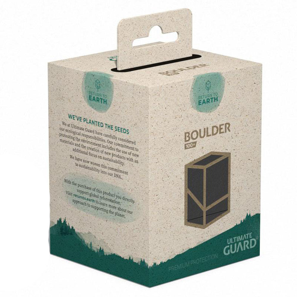 Ultimate Guard have carefully considered our ecological responsibilities. Our commitment to protecting the environment includes the use of new materials and the creation of new products with an additional focus on sustainability. Developed and produced in Germany, this handy and solid Boulder 100+ with super-easy opening consists of 97% renewable resources, with a FSC certified grass paper packaging. The deck case is recyclable and holds up to 100 double-sleeved or 120 single-sleeved cards when using Ultimate Guard Sleeves. With the purchase of this Return to Earth product you directly support global reforestation. Visit returnto.earth to learn more about our approach to supporting the planet.