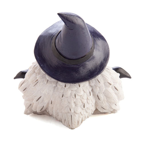 Adorable family of snowy owls wearing witch hats. Feather texture and black fleck details look just like the real animal. Made from sturdy polyresin with a luxurious, weighty feel.