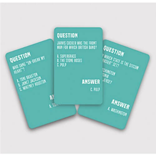 Are you still stuck in the 90s? Well put down your tamagotchi, grab your friends and test yourself on everything from The Fresh Prince of Bel-Air to Britney Spears.