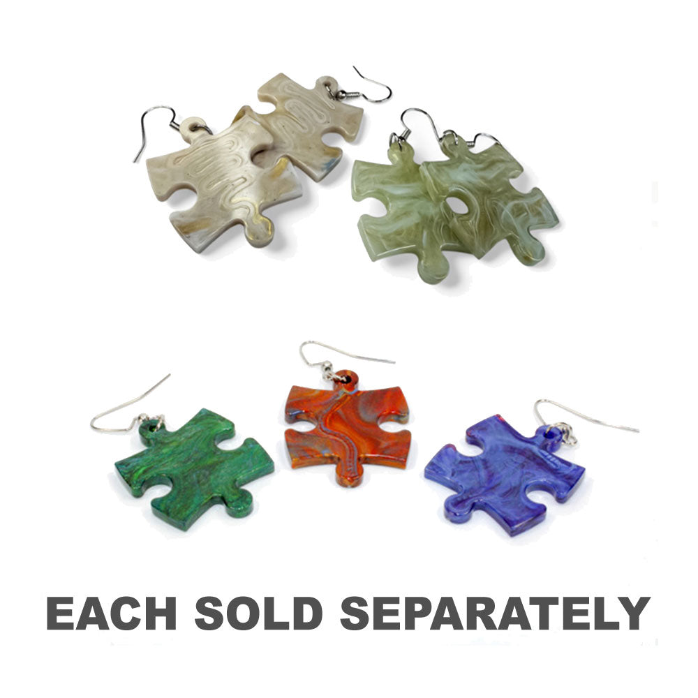 - Each earring is a playful nod to puzzles, uniqueness, and colorful style.
