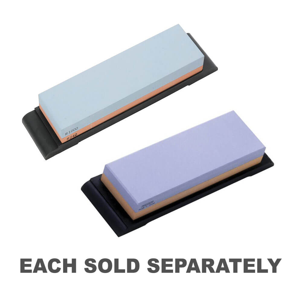 Esta combinación de afilado de Whetstone de Global ha sido especialmente desarrollada para su uso con cuchillos de cocina de calidad profesional. Si sigue las instrucciones detalladas encerradas en el empaque, ¡puede lograr resultados espectaculares, incluso excediendo los cuchillos, niveles de nitidez ex factoría! Es la forma recomendada de mantener sus cuchillos en las mejores condiciones para su uso. Esta piedra cuenta con 2 arenas diferentes: 240 y 1000. El arena 240 se clasifica como un acabado de "curso", y debe usarse cuando las cuchillas de cuchillos están astilladas, dañadas o completamente contundentes. La arena 1000 se clasifica como un acabado "medio" y es la piedra principal para afilar cuchillos que se han vuelto contundentes.
