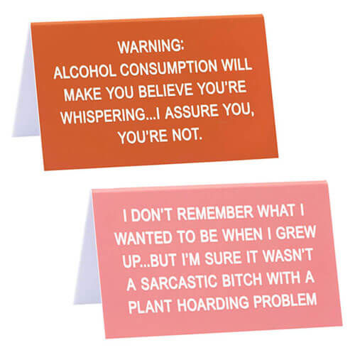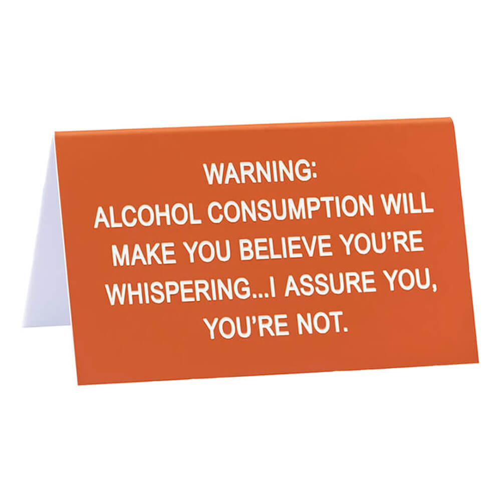 Rompe la monotonía del trabajo y trae algunas LOLs a la oficina con este ingenioso letrero de escritorio de SAY WHAT?. El título dice: "Advertencia: el consumo de alcohol le hará creer que está susurrando... Le aseguro que no es así".