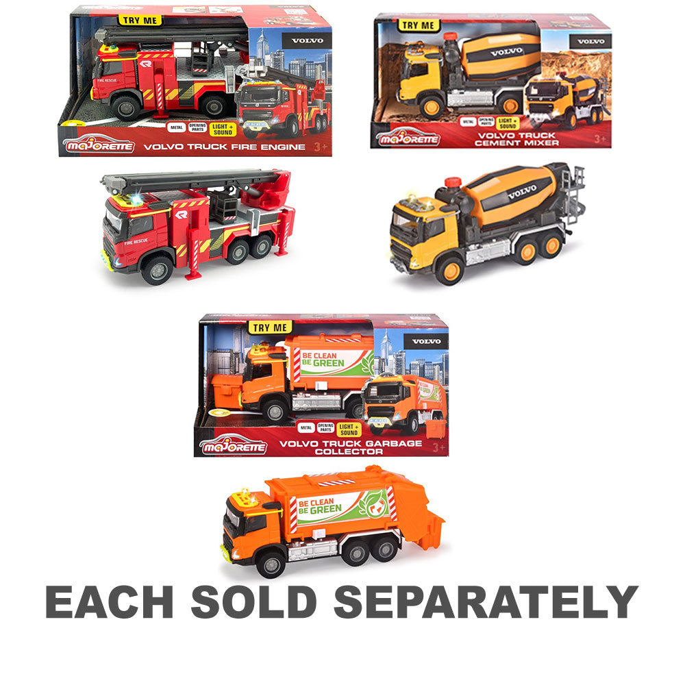 • Este camión de bomberos de Majorette es un modelo de Volvo con licencia oficial y Rosenbauer está diseñado sobre la base de un camión de bomberos internacional. Incluye estabilizadores móviles