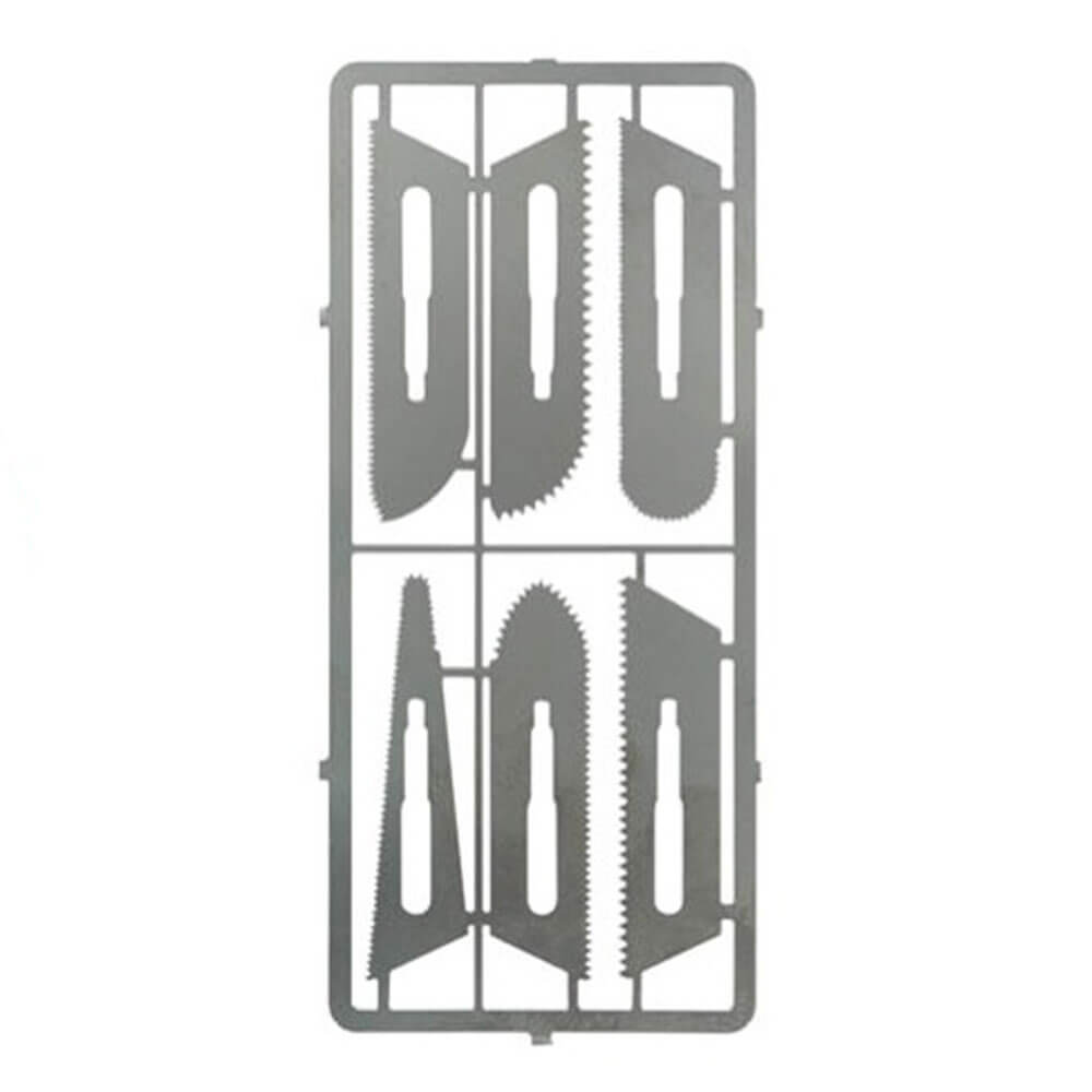 • El conjunto incluye 6 cuchillas de sierra muy finas (grosor de 0.24 mm). Excelente para un intrincado aserrado y corte en plásticos, madera y piezas grabadas. Las cuchillas pueden ajustarse a todos los pequeños manijas del bisturí.