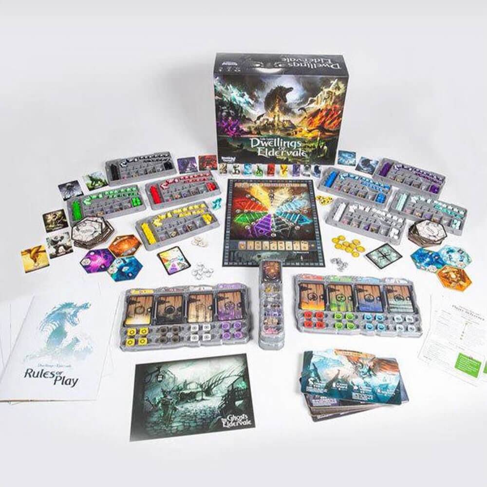 • Los jugadores se turnan para colocar un trabajador en Eldervale o reagruparse y activar su cuadro de cartas de aventura.