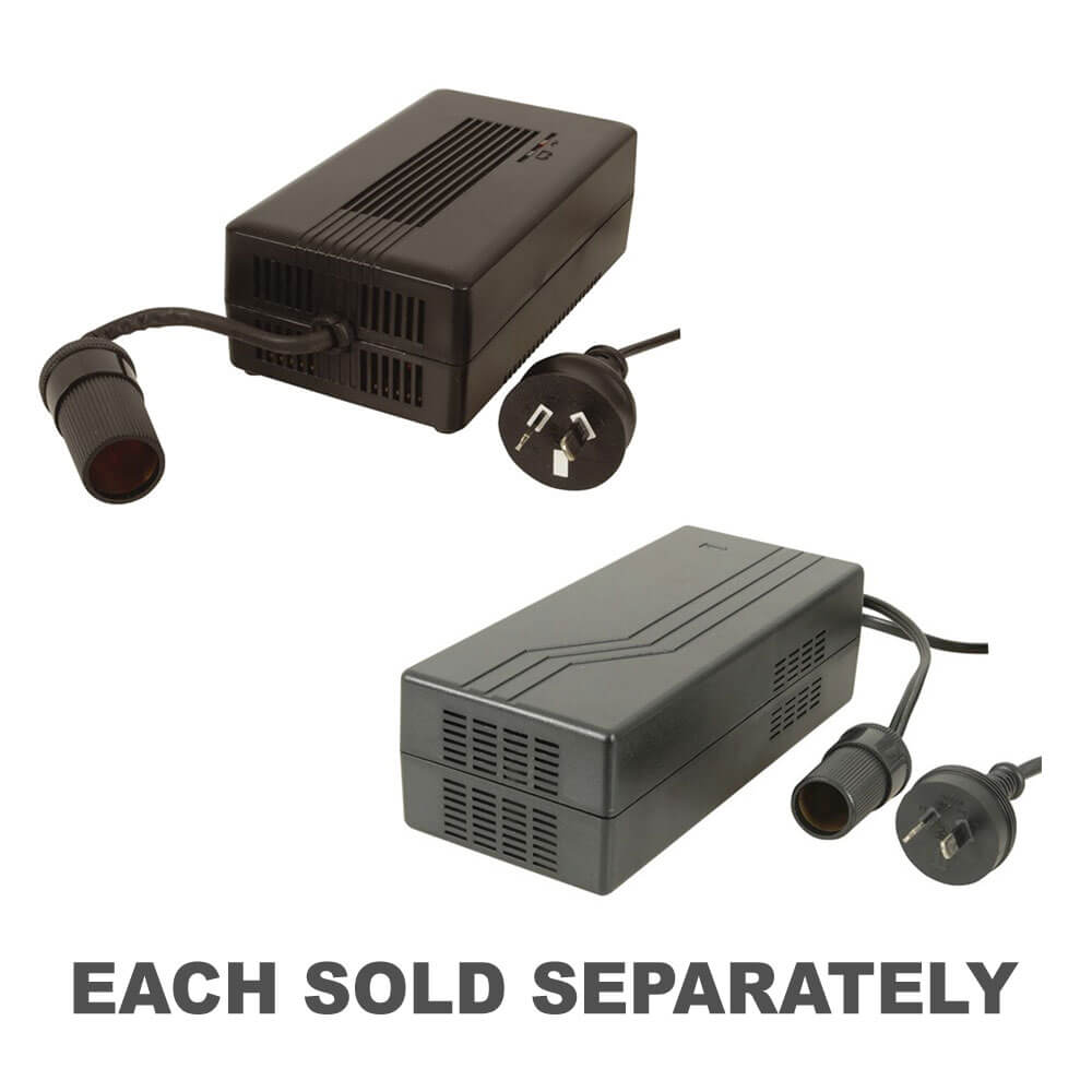 A handy solution for powering 12V equipment such as car coolers and camping fridges from a mains AC power source. Supplied with a 1.5m output lead with cigarette socket output, making connection simple and easy.
