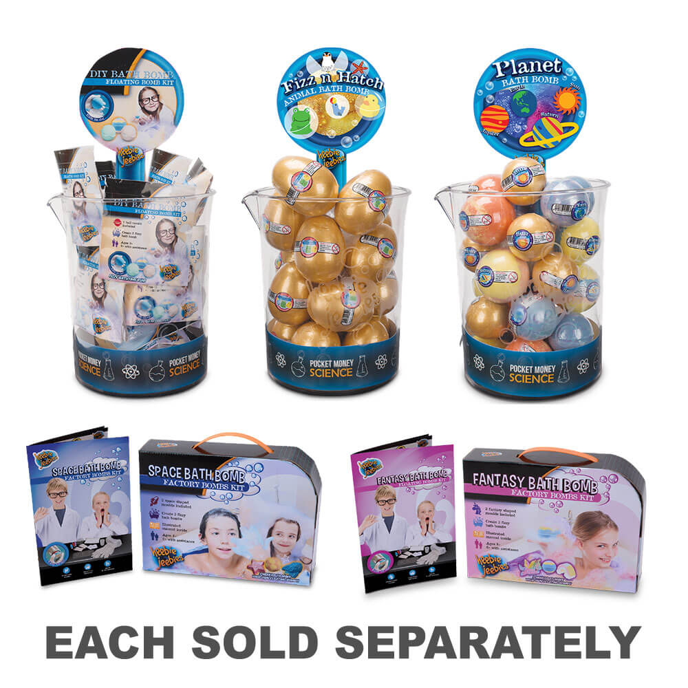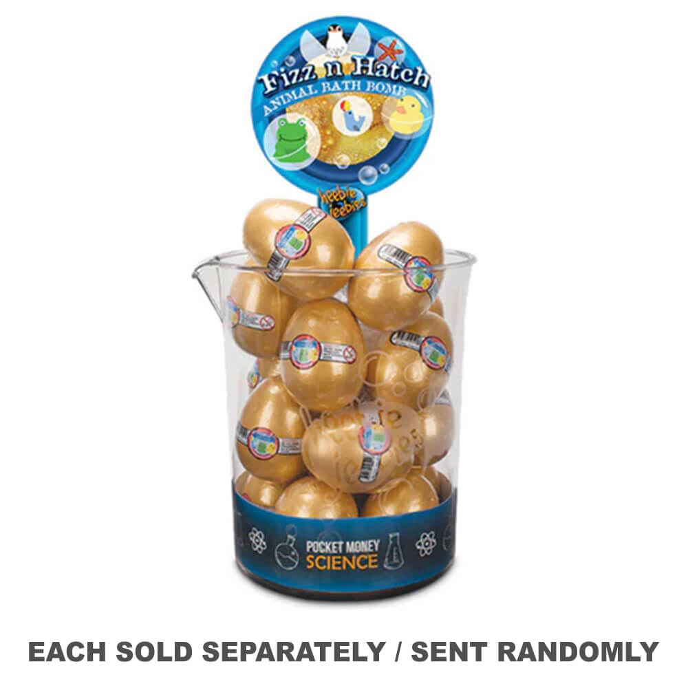 Place this golden egg bath bomb into water, watch it fizz away then find a surprise animal toy inside.