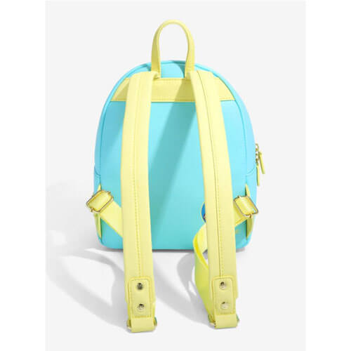 The vibrant front zipper compartment shows Clarice performing a song, surrounded by tropical foliage and embroidered floral details. As sparkles of the stage curtain twinkle around her, Chip and Dale are seen below, angrily locking eyes with one another. The rest of the backpack sports the colors of Clarice's outfit, finished with shiny gold-tone hardware and a portrait of her on the back.