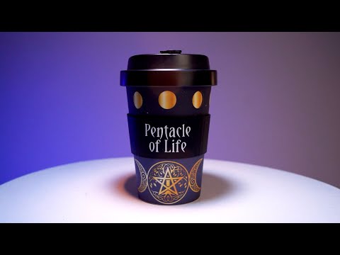 - Matching black anti-spill lid and protective silicone band with 'Pentacle of Life' in a striking white font.