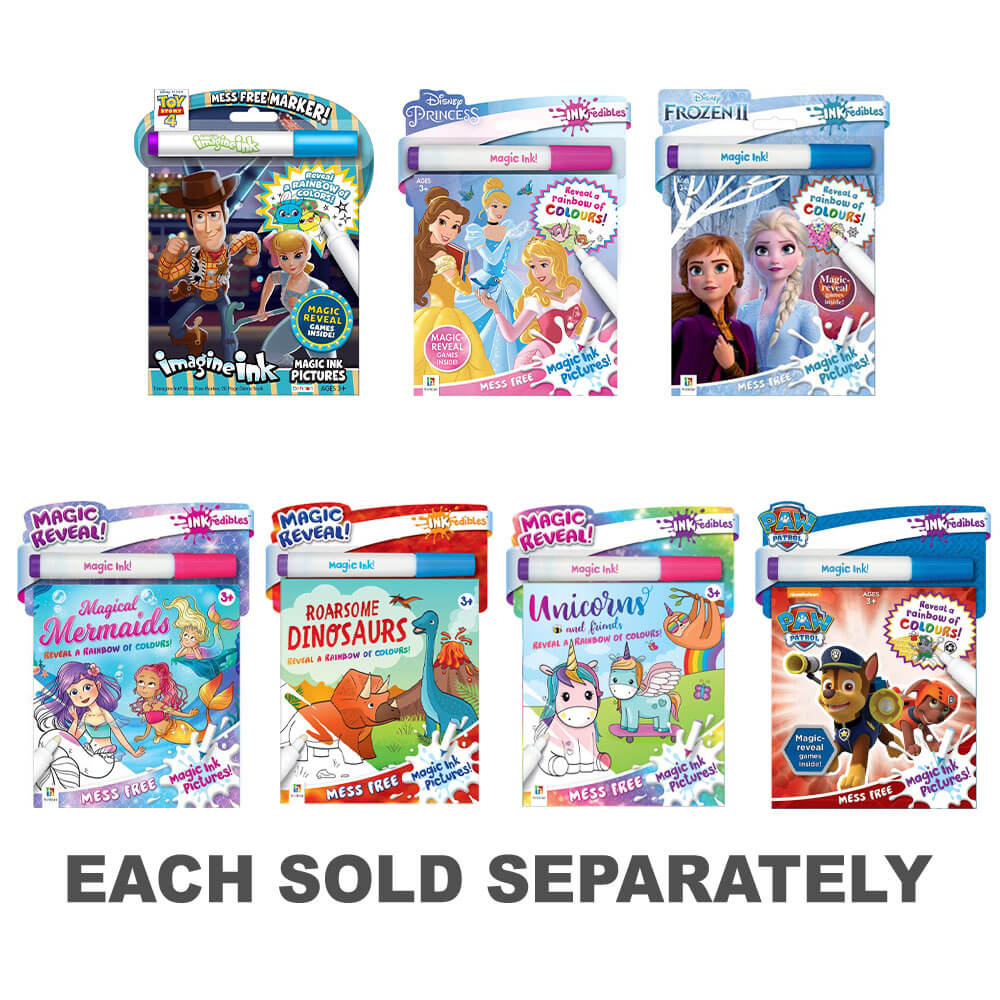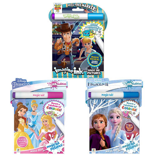 Reveal a rainbow of colors on every page with Bendon's Toy Story 4 Imagine Ink Magic Pictures! This patented technology magically reveals a rainbow of colors with just one Magic Ink marker. Your little artist will love finding Woody, Buzz and their friends, and you'll love the magic of mess-free coloring! Mess-free coloring, games, and activities featuring favorite Toy Story 4 characters in a portable size that's great for travel. This is an official Disney licensed product and is ideal for children ages 3 and up.