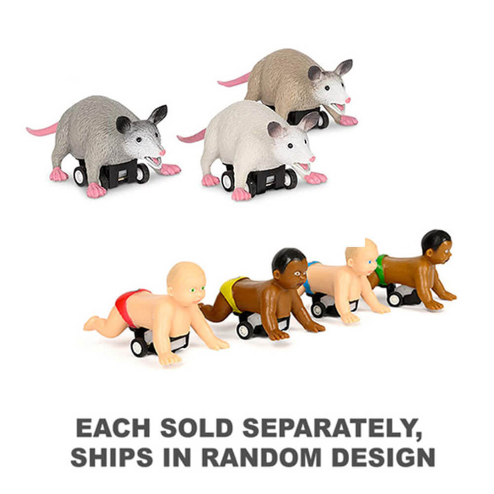 Ces opossums de course présentent une version à 4 roues à traction gonflée de l'opossum conçue pour la vitesse. Qu'ils creusent à travers vos ordures, mangez des tiques d'un cerf ou des courses de traînée dans l'allée derrière votre place, ces titans de vinyle doux et plastique 3-3 / 4 "(9,5 cm) et plastique sont vraiment frayés dans votre cœur .