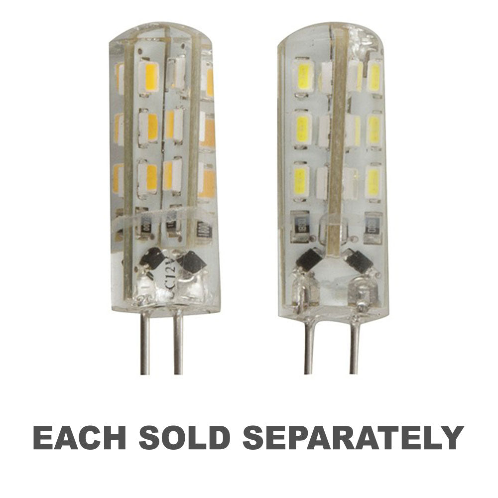 Remplacement LED à faible puissance pour les lampes de style halogène G4. Convient pour une utilisation dans les luminaires pour les applications domestiques et les véhicules récréatifs. Complètement encapsulé en résine, ce qui les rend étanches.