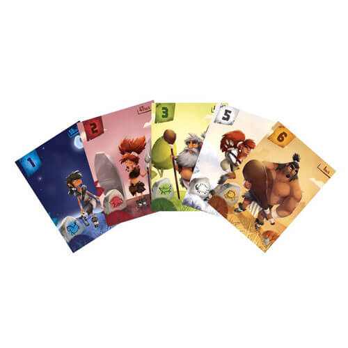 Placez les carreaux d'animaux sur la carte principale, puis choisissez les objectifs du jeu. Chaque joueur prend les 12 cartes du clan de son choix, puis placent sa grotte et les jetons totémiques correspondants devant eux. Chaque joueur tire ensuite les trois premières cartes de son deck. C'est leur main de départ. Pour récupérer la tuile animale, la valeur la plus basse indiquée à côté de chaque tuile doit être atteinte. Les joueurs choisissent simultanément les chasseurs qu'ils veulent envoyer de leur main de cartes. Le joueur avec le total le plus bas jouera en premier car ses chasseurs sont les plus rapides. Le joueur avec le total le plus élevé jouera en dernier mais pourra chasser plus d'animaux ou de plus gros. Bien que, comme ils sont plus lents, il ne reste plus rien à chasser !!
