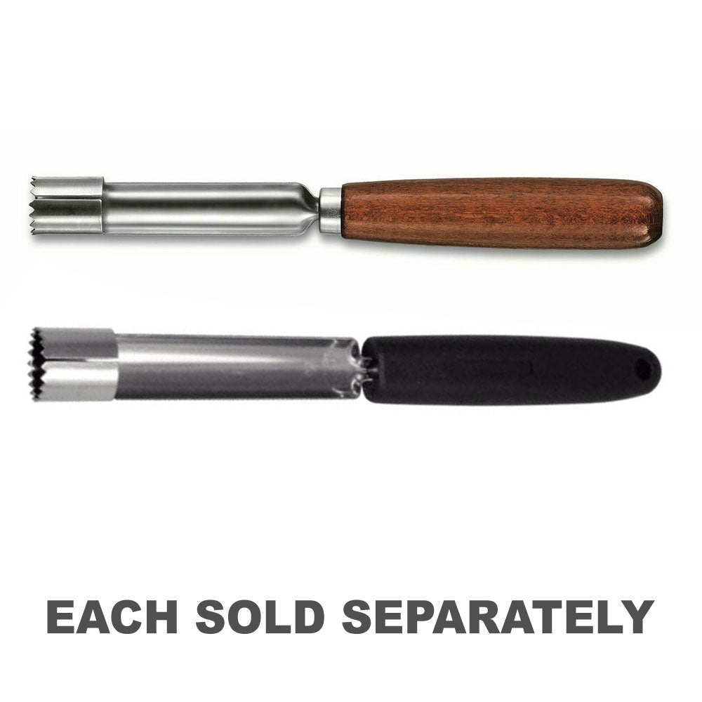 Un perceur de pomme en acier inoxydable professionnel de 16 cm de long avec un bord dentelé qui passe facilement par la pomme. Équipé d'une poignée en polypropylène pour une poignée confortable.