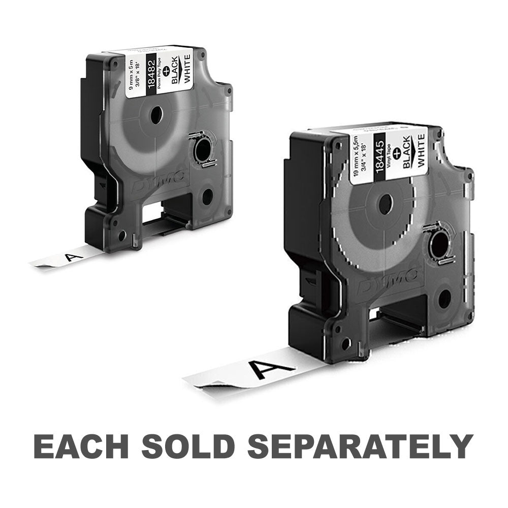 • Etichetta con fiducia usando Dymo Rhino Black su nastro in vinile bianco