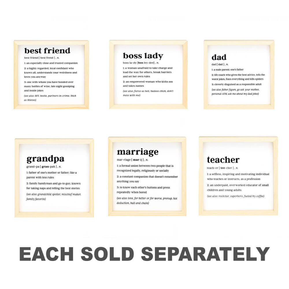 Questa mini arte incorniciata definita presenta un design in bianco e nero minimalista con una definizione di matrimonio originale. Il regalo perfetto per il tuo altro significativo per celebrare un anniversario o solo perché!