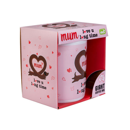 • 「ママラブロングタイム」というフレーズをフィーチャーしたセラミックマグカップ