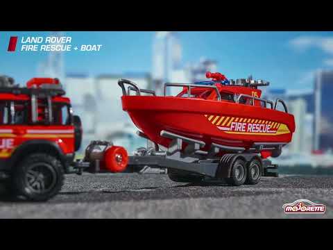 ボートモデルカーを備えたMajoretette Fire Rescue Land Rover