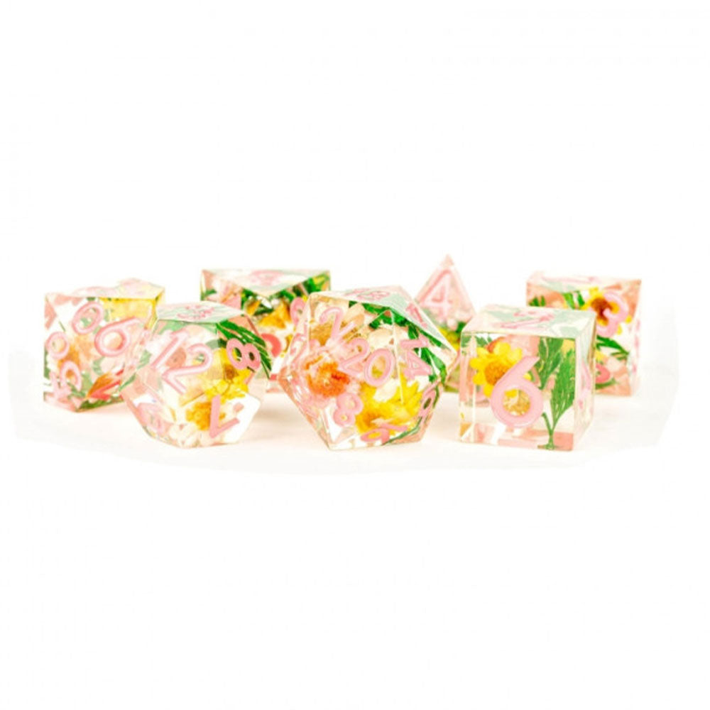 私たちの手作りの鋭いエッジ樹脂のサイコロは、美しい鋭い縁を保つために手で磨かれています。これらのサイコロには、美しい本物の花が吹き込まれています。これらのサイコロは転倒していないため、大量生産されたプラスチック製のサイコロよりも正確です。樹脂のサイコロセットの価値を打ち負かすのは難しいです。美しく手頃な価格で、これらは私たちの金属製のサイコロにとって素晴らしい「批判的な補強材」です。各16mm多面体セットには、7つのサイコロ(D4、D6、D8、D10、D10(00-90)、D12、およびD20)が付属しています。