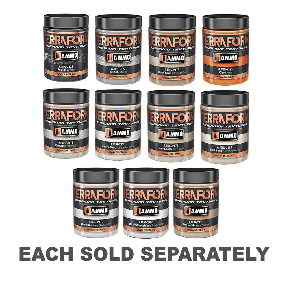 天然鉱物で作られたこの新しいアクリル製剤により、コンクリート、砂、アスファルト、粘土、バラストなど、さまざまなテクスチャーを本物のテクスチャーを再現することができます。この製品、アクリル、非毒性、無臭、100 mlの缶詰で提示されています。 24時間以内に完全に乾燥し、テクスチャの範囲から他の同様の製品と混合できます。 1/16から1/48までのあらゆるスケールに適しています。