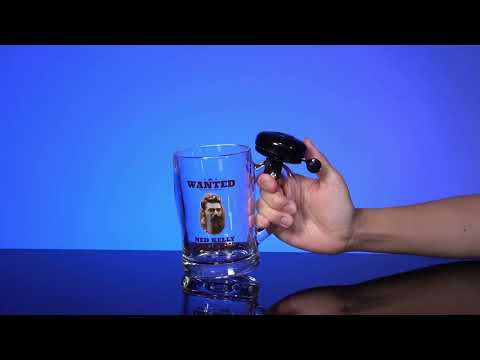 Glazen biermok met een zwarte bel die aan het handvat is bevestigd - bel hem als het tijd is voor een ander drankje! Functies Aussie Icon Ned Kelly's Wanted Poster. Perfect om je glas altijd vol te houden!