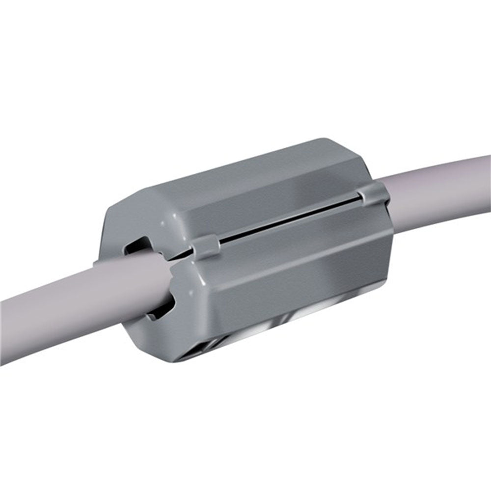 In principe een gesplitste ferrietkern met hoge permeabiliteit met een plastic behuizing, zijn deze apparaten ideaal waar parasitaire spanningspieken een probleem of potentieel probleem zijn. De kernen worden geleverd in een scharnierende plastic behuizing, snap gewoon door naar de computer of gegevenskabel. Er worden drie versies aangeboden die de meeste computerkabels bedekken enz. Typische impedantie bij 25MHz 300OHMS ongeveer, 590OHMS bij 100 MHz daalt daarna af. Case-maatregelen: 20LX19Dia Mm.- Pack 4