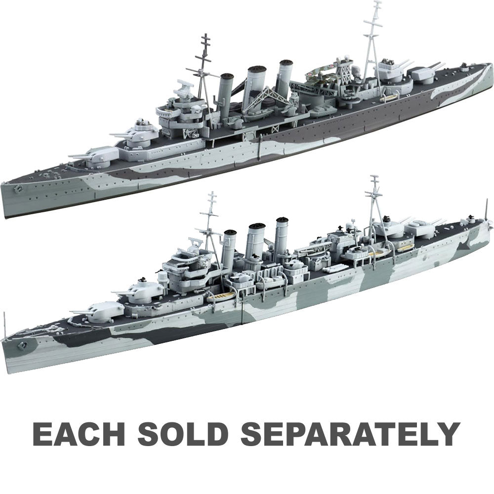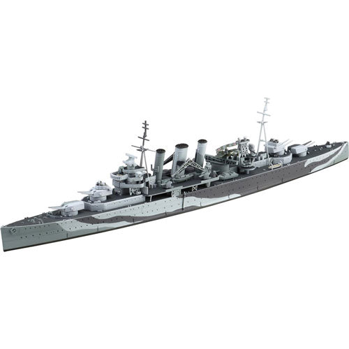 This scale model represents the HMS Kent, a heavily armed cruiser known for its service during World War II. With detailed weaponry and an imposing profile, this model showcases the engineering prowess of British warships. A prized addition for collectors of historical naval vessels.
