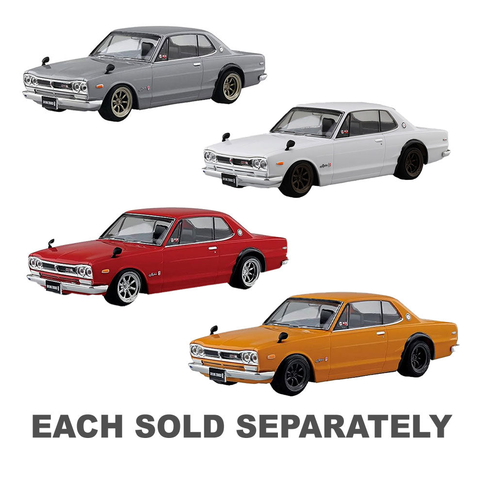 Den første tilpassede hulldesignen er sammen med SNAP KIT -serien. Den første utgivelsen er Hakoska GT-R. Dekkene har også et trukket dekk for en utmerket atmosfære. Du kan også sette den sammen med en lav nedspesifikasjon. Ingen grunn til å male ved å gjenskape fargen på kroppen laget av plastmaterialer, det kreves ikke noe maleri. Den blanke kroppen blir også fremhevet. Limfritt innsatsdesign eliminerer behovet for lim. Dette produktet er en plastmodell som krever montering.