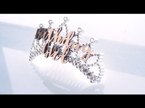 - Srebrna tiara z różowym złotem „„ Birthday Girl ”„ Odznaka.