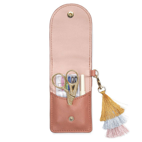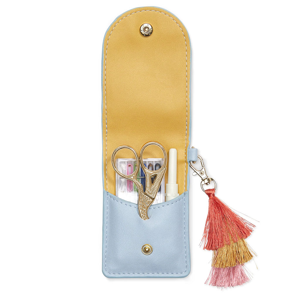 Inteligentny i kompaktowy zestaw do szycia podróżnego w wegańskiej skórzanej obudowie, idealnie zabrania ze sobą w dowolnym miejscu. Praktyczny prezent dla częstych podróżników, pończochy, urodziny lub po prostu wsuwające się w biurko robocze lub mieć pod ręką w domu na nieszczęścia garderoby. Kiedy wszyscy jesteście z materiału szycia i wszyscy jesteście z szwów, sprawdź ten fantazyjny, ale praktyczny zestaw do szycia. To najlepsza troska, w jakiej możesz być, gdy rzeczy się rozpadają!